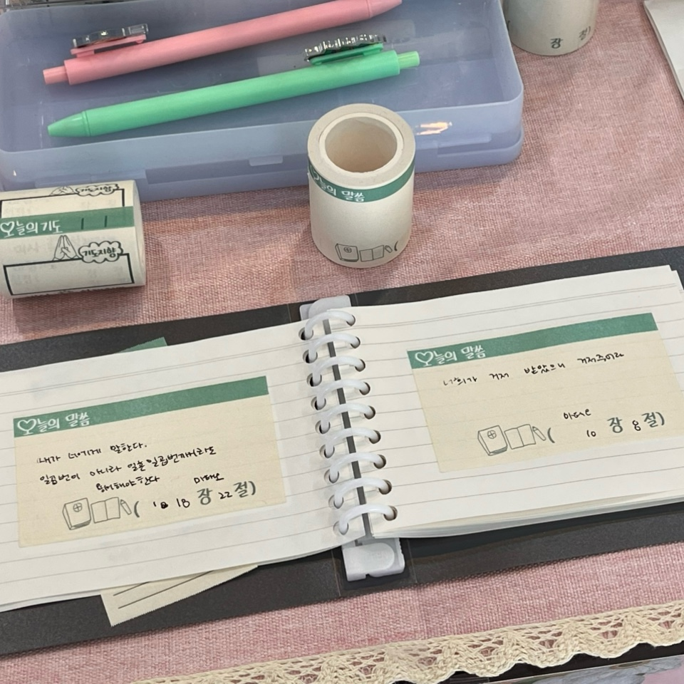 품고 사는 말씀,오늘의 독서/복음에서 마음에 와닿았던 말씀,성경을 읽다가 오래 기억하고 싶은 말씀 등을 직접 써서내 다이어리나 일기장에 보관할 수 있습니다.