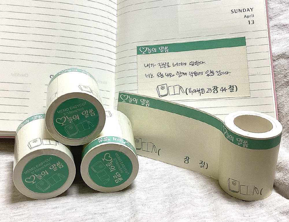 안녕하세요, 홀리벨입니다.'오늘의말씀' 점착메모지를 소개합니다!"이스라엘아, 들어라!주 우리 하느님은 한 분이신 주님이시다.너희는 마음을 다하고 목숨을 다하고 힘을 다하여주 너희 하느님을 사랑해야 한다.오늘 내가 너희에게 명령하는 이 말을 마음에 새겨 두어라.너희는 집에 앉아 있을 때나 길을 갈 때나,누워 있을 때나 일어나 있을 때나,이 말을 너희 자녀에게 거듭 들려주고 일러 주어라.또한 이 말을 너희 손에 표징으로 묶고 이마에 표지로 붙여라.그리고 너희 집 문설주와 대문에도 써 놓아라."(신명 6,1-9)말씀을 모티브로 제작된 '오늘의 말씀'!