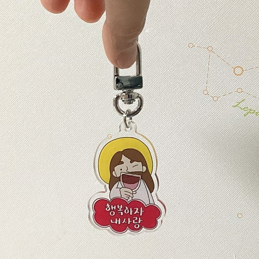 안녕하세요, 홀리벨입니다.행복하자 키링을 소개합니다!예수님께서는 몸소 제자들의 발을 씻어주실 때,앞으로 어떻게 살아가야 하는지 알려주시며주님께서 알려주신 대로 사는 이는행복하리라고 말씀하십니다.우리가 늘 행복하게 살아가기를 바라는,예수님의 사랑가득한 마음을 담아보았습니다.