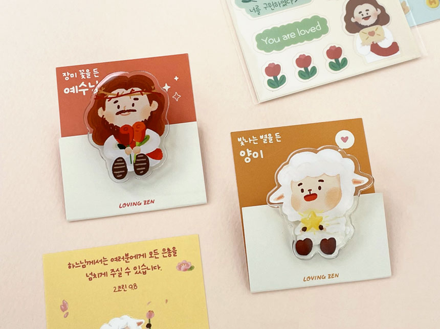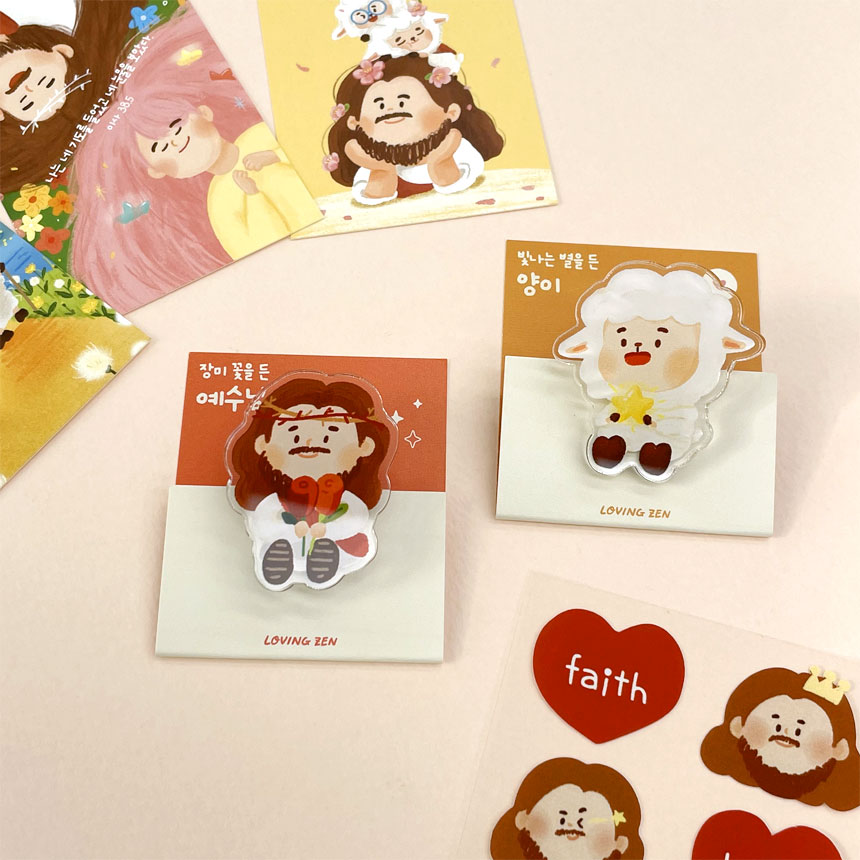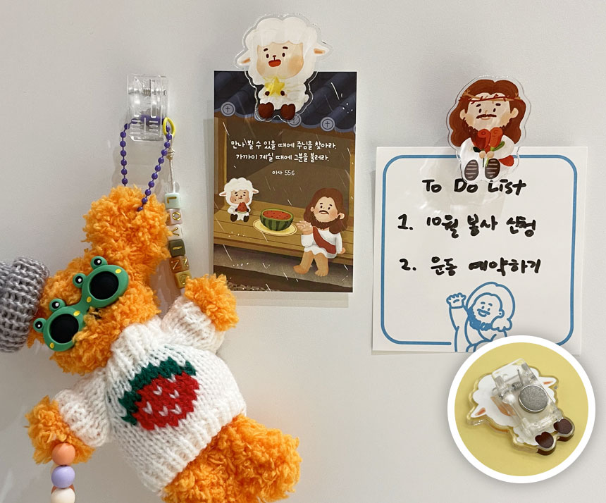 예수님과 양이 아크릴 자석 집게